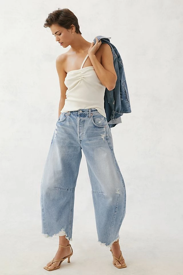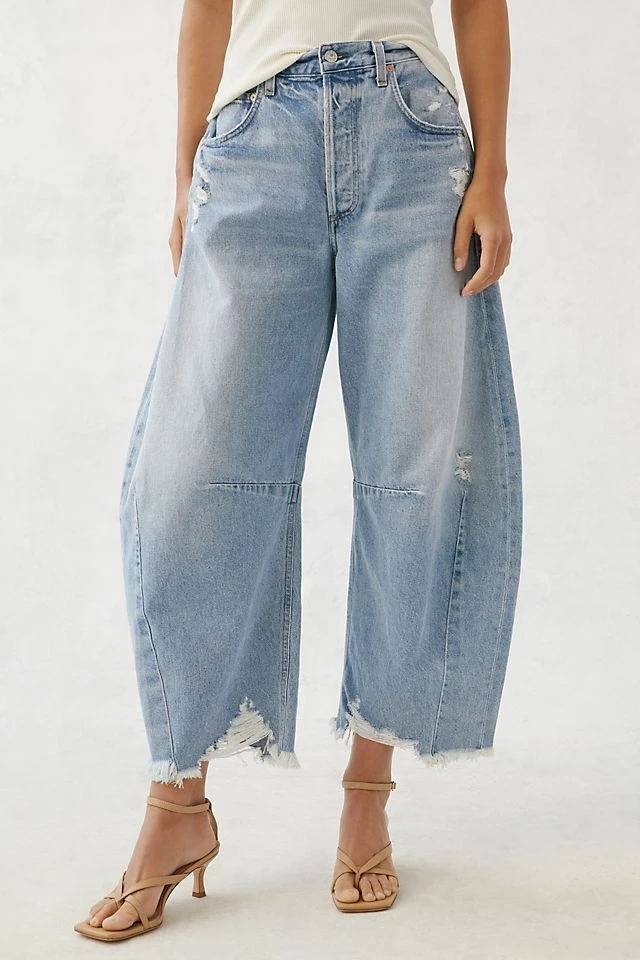 - Balloon legs with frayed hem