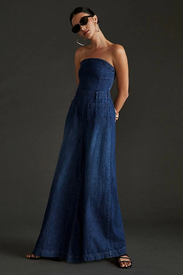 Coupon ???? Pilcro Strapless Polished Wide-Leg Jumpsuit DARK RUE WASH ⌛